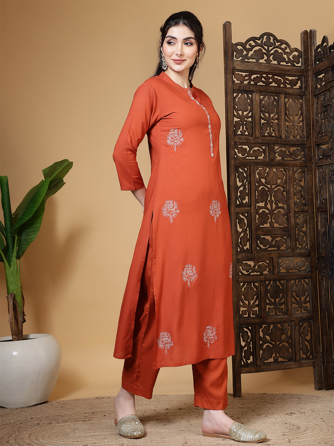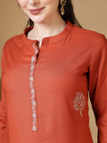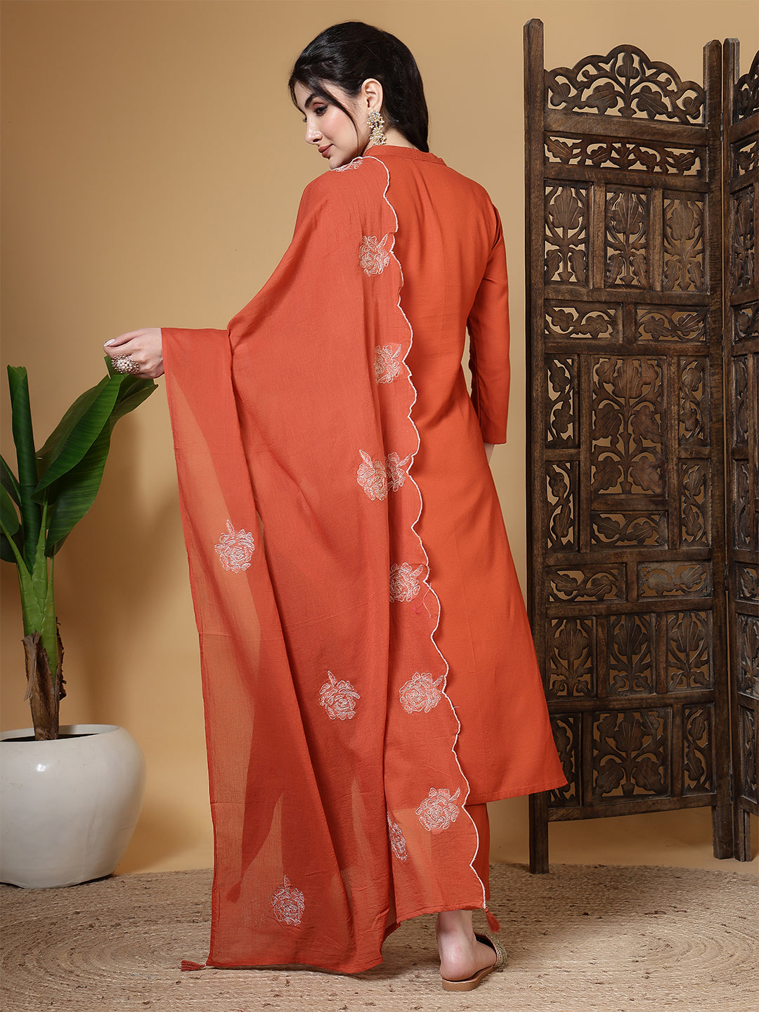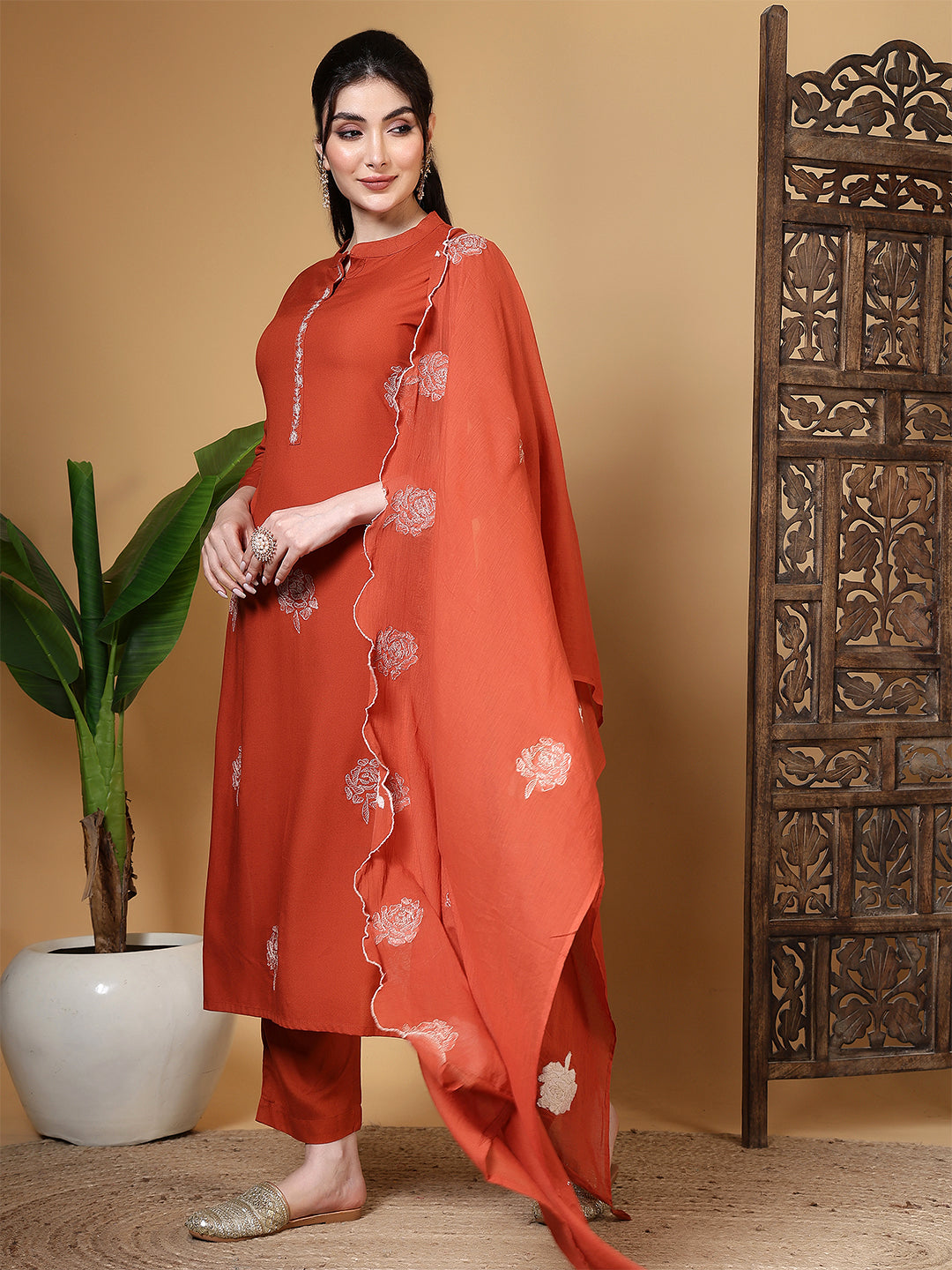 Embroidered Straight Collar Neck Kuta Set with Pant & Dupatta